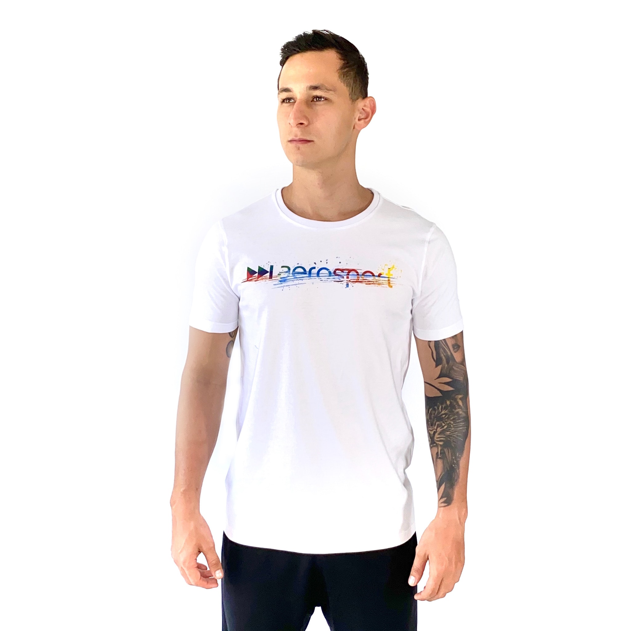 - Cuello redondo y mangas cortas
