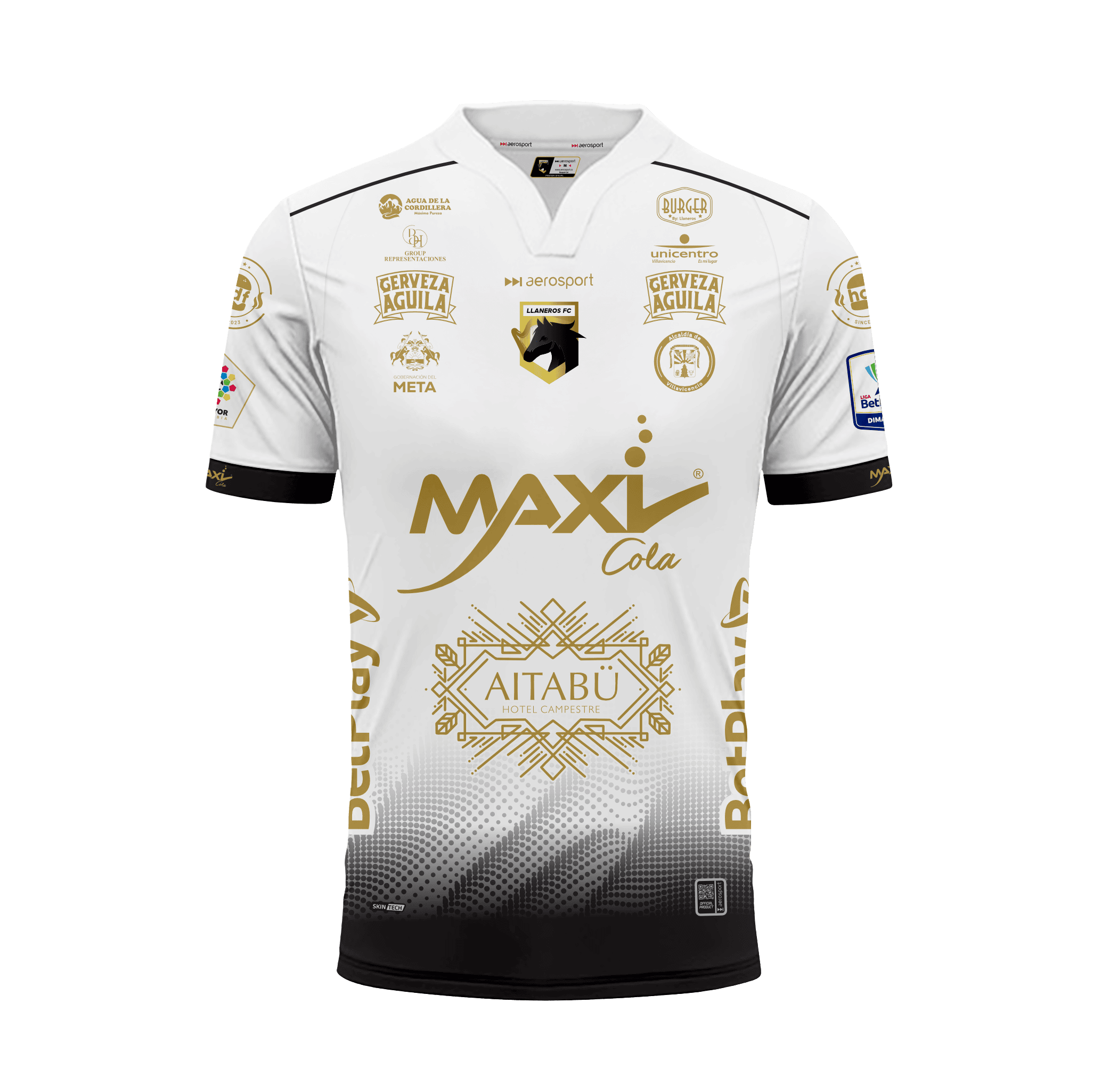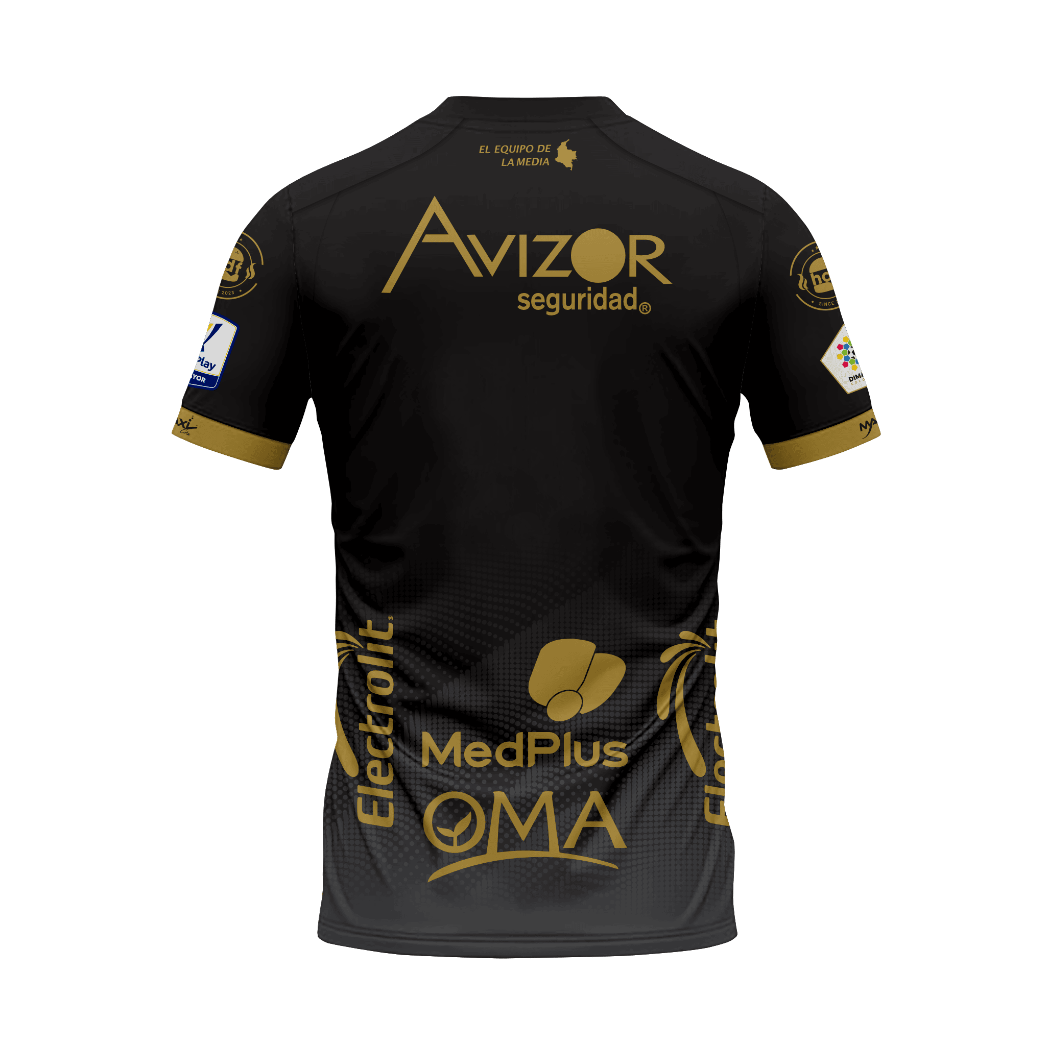 - Aplique dorado “del equipo de la media Colombia” en dorsal